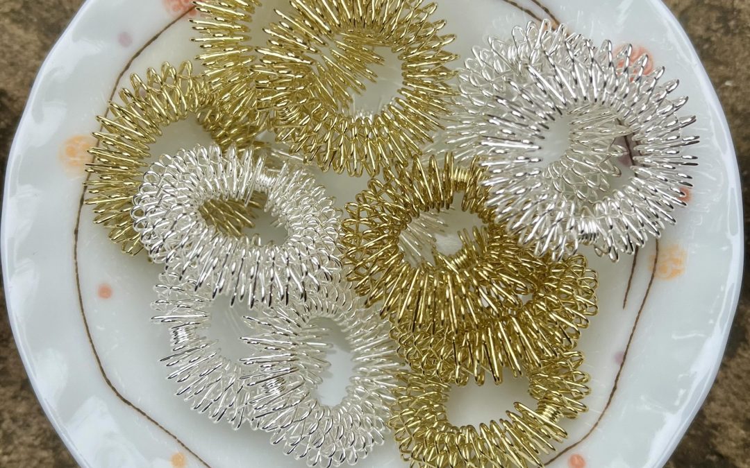 I normally have these acu-rings in my bag to give to clients if they ever need them. You move them up & down your finger to massage, thus promoting Qi and blood flow. They’re paricularly good for arthritis, or numbness and stiffness in the fingers. They also work well with a stimulating oil like the traditional Chinese warming oil woodlock or an arnica oil like Weleda Arnica massage balm.
